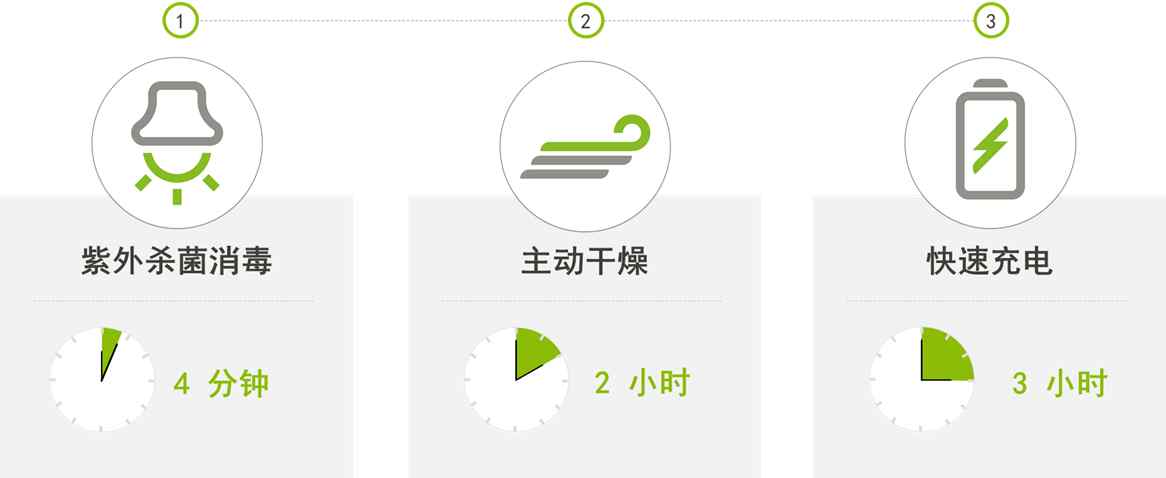 不再纠结!峰力安馨宝充电盒可以同时充电与护理。3小时充电周期,充电的同时完成2小时的消毒、干燥护理;当然,您也可以选择只进行充电。